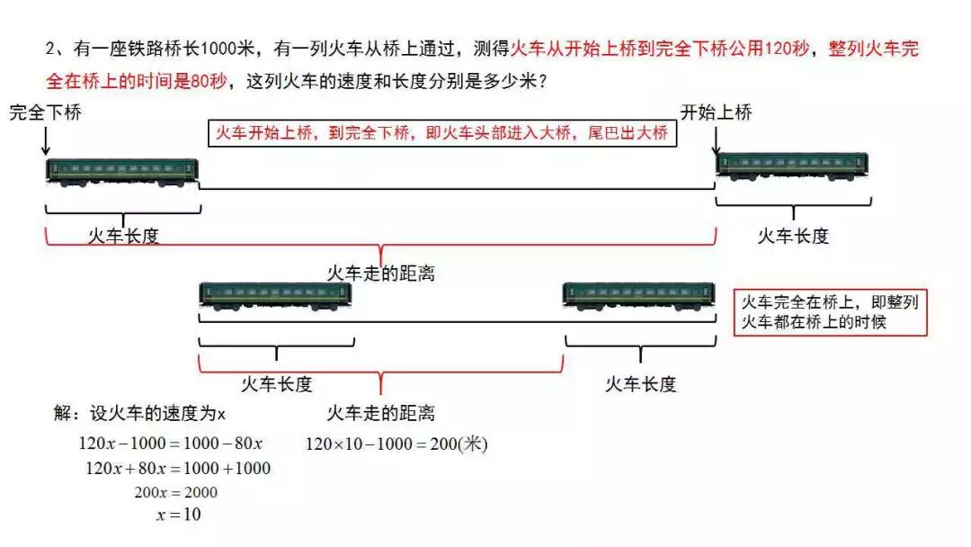 但我不著急講題,而是播放了一段火車過橋的動(dòng)畫,動(dòng)畫演示了火車通過橋的時(shí)間和在橋上的時(shí)間兩種方式。